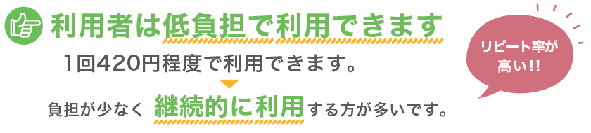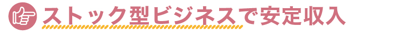 このビジネスの大きな特長は「ストック型」であるという事です。一度ご契約いただいた利用者様に継続してサービスを提供するため、月々の売上が積み上がっていきます。売上が“ゼロからのスタート”になることはなく、月々の安定収入が非常に高い水準で維持可能です。